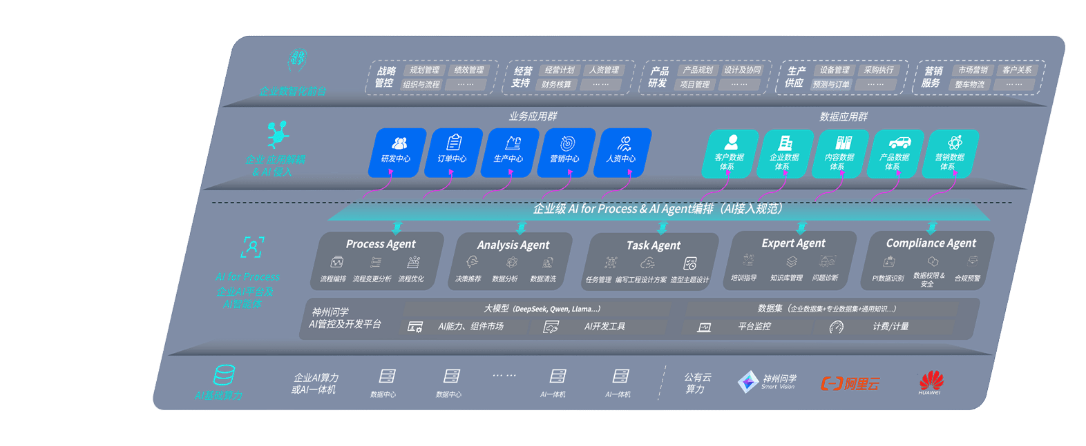 巅峰国际问学智车解决方案是一套基于AI技术的汽车行业智能化系统,,,,覆盖从底层算力到顶层AI应用的全栈方案。。。。方案由算力层、、模型层和应用层组成:算力层,,方案支持多种一体机配置,,,具备云端灵活部署、、、多云适配以及动态优化计算资源的能力;模型层,,,,巅峰国际问学平台版提供了企业级AI应用一站式构建与管理平台,,支持基于后训练强化技术的汽车企业专属模型的训练、、评测和运营;应用层,,,,巅峰国际问学DeepSeek版提供包括超级员工、、智能招采、、、智能营销、、、智能客服、、AI for BI等一系列解决方案,,,,可助力汽车行业实现数字化转型,,,,让管理更智能、、、、响应更敏捷。。